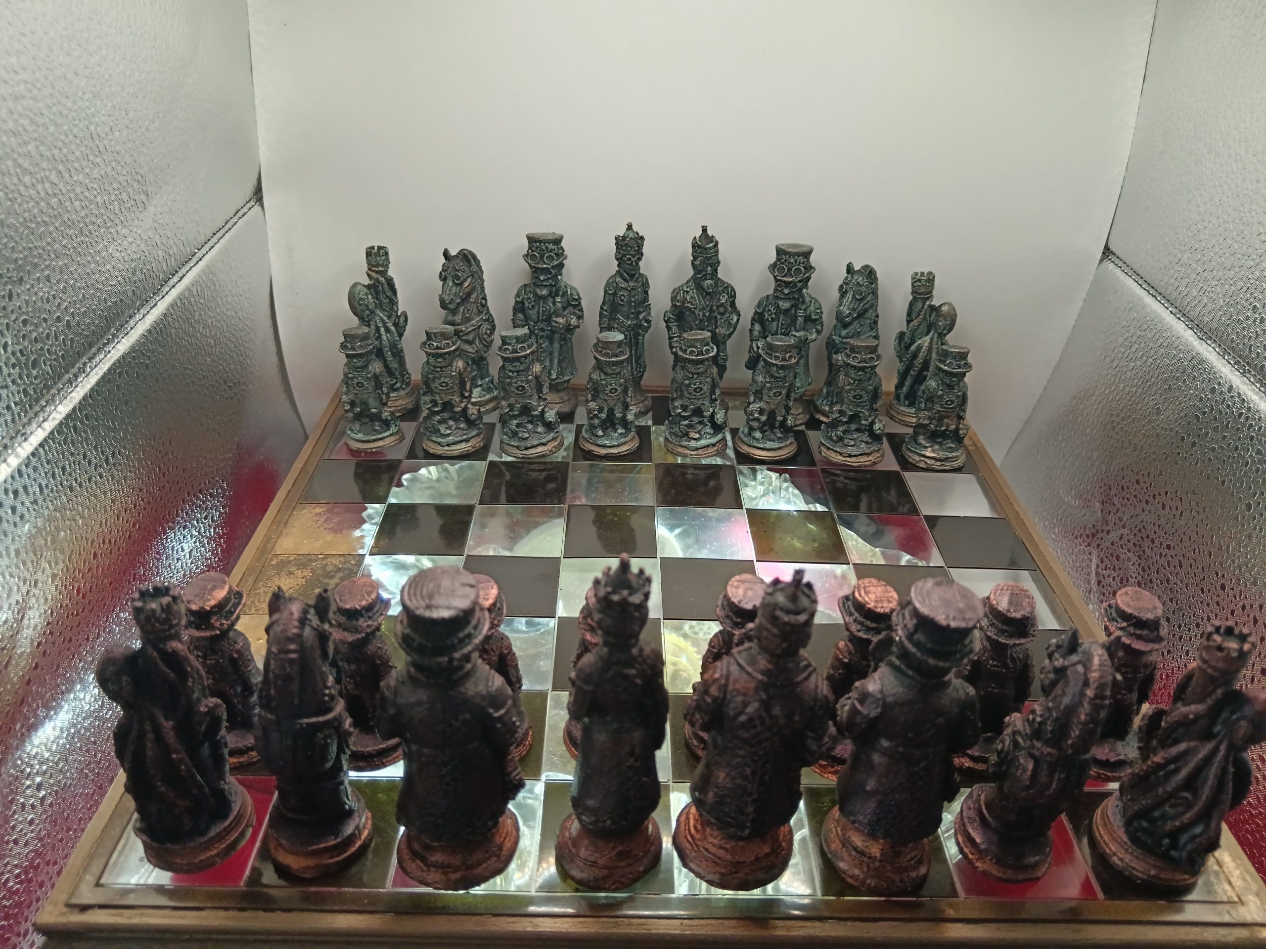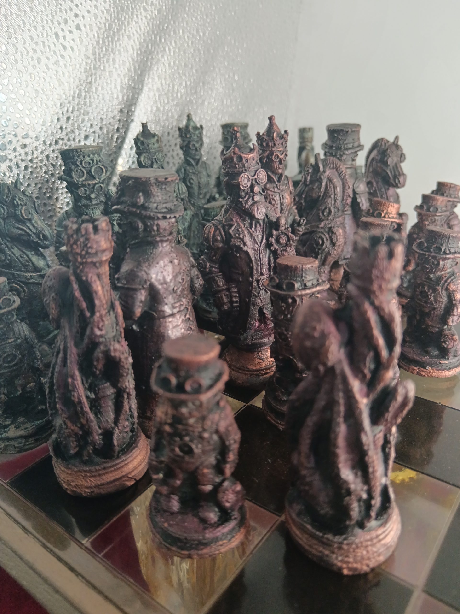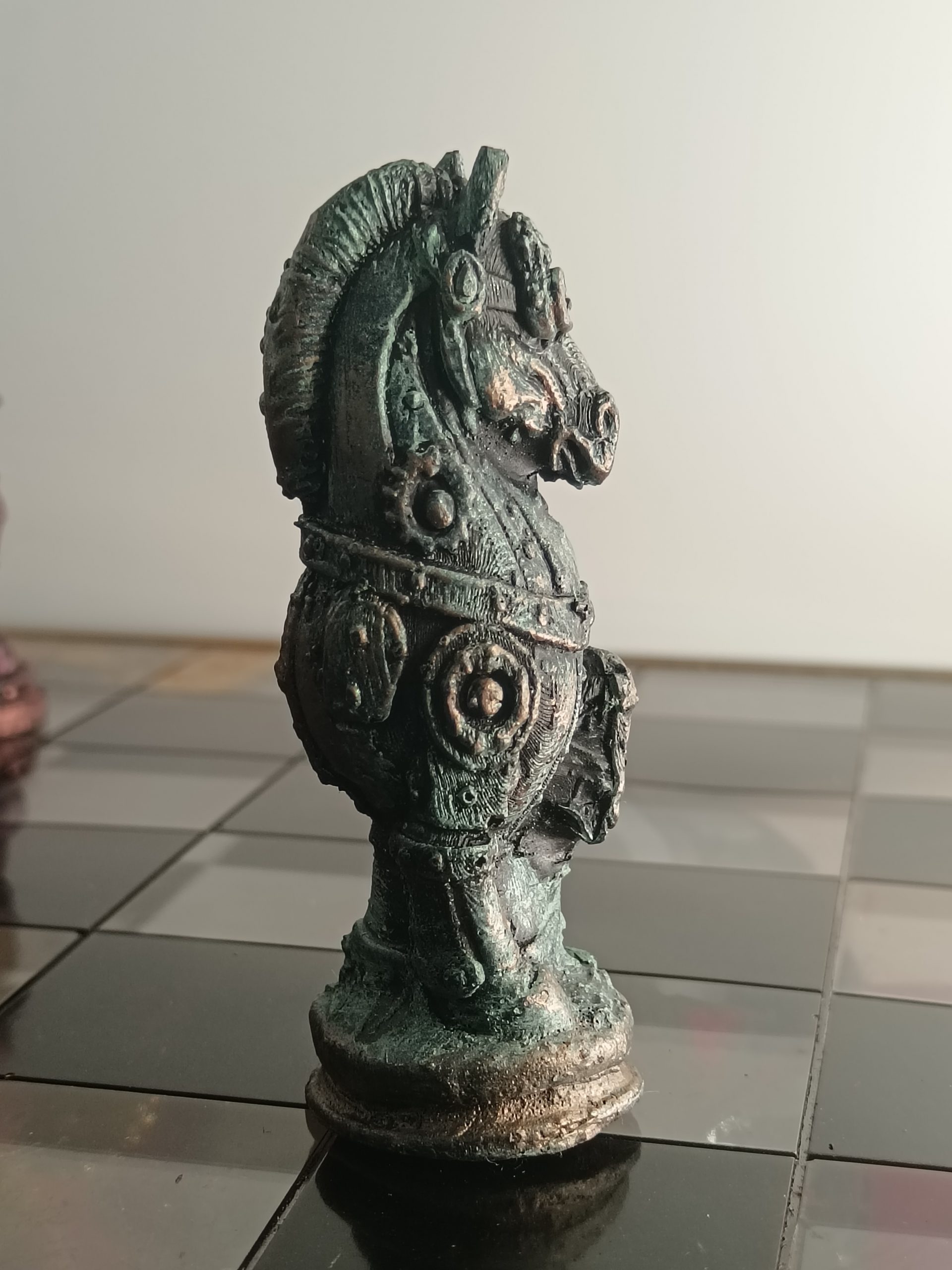 Je fabrique des pièces , en m’inspirant de modèles existant en impression 3D, en modifiant des figurines d’occasion, en modelant de la terre , je crée ensuite des moules en latex ou silicone et coule enfin de la résine (époxy, aqua, pierre reconstituée ou jesmonite). Je patine ensuite les